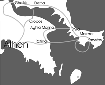 not far from Athen, ca. 1 hour away from port Rafinas and the new airport Spata.The journey can also be undertaken by public transport (bus).