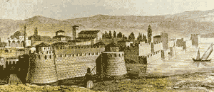 Chalkida ist die größte Stadt Euböas und gehört mit ca. 60.000 Einwohnern zu den 10 Großstädten Griechenlands. Sie ist Haupstadt der Insel und Sitz der Selbstverwaltung des gleichnahmigen Staatsbezirkes, des Handels und Industriezentrum Euboeas. Euboea's Hauptstadt, Chalkis, hatte schon seit alten Zeiten mit ihrer Lage, nämlich dort wo man von Voetia nach Euboea ankommt, eine Schlüsselposition. Die Bedeutung ihrer Lage, in Verbindung mit der Fruchtbarkeit ihrer Umgebung, haben Chalkis zum Mittelpunkt für das Leben und die Wirtschaft Euboea's gemacht! Chalkis liegt zu beiden Uferns des Euripus, auf der Insel- wie auf der Festlandsseite, ist auf den Stätten der alten und mittelalterlichen Städte erbaut. Der kleinere Teil auf dem Festland, ist seit 1940 zur Präfektur von Euboea, und Stadtverwaltung Chalkis, gehört, ist rund um den Kanithos Hügel errichtet, ein moderner kleiner Vorort mit einem herrlichen Wald und Bademöglichkeiten bei "Asteria Strand", Wohnhäusern, Nachtclubs, Hotels und Villen. Ein moderner Fremdenverkehrspavillon wurde im Wald errichtet und darüber erhebt sich die Festung Karababa (erbaut von Sultan Kara--baba um 1680 - 90 auf den Ruinen der alten Befestigung von 410 v. CH). Ein planierter Weg führt zum Eingang der Festung, die zu den bedeutensten Sehenswürdigkeiten der Stadt gehört. Die Altstadt von Chalkis bot noch um 1890 einen sehr malerischen Anblick dar. Die zinnen- und turmgekrönte, von wenigen finsteren Toren gequerte venizianische Mauer, die stellenweise, durch türkische Anbauten verstärkt war, umgürtete damals noch die von Minarehs überragte Häusermasse des Kastro, welche die Brücke mit ihrem alten Brückenkastell hineinführte. In der Altstadt durften in türkischer Zeit nur die Türken und Juden wohnen, die Griechen dagegen in der Vorstadt, die durch ein breites leeres Glacis vom Kastro getrennt, nordwärts sich längs des Ufers ausdehnte und der Sitz des Handels und Verkehrs war. Nachdem man die Meerenge verbreitert hatte, hat man alsbald die ganze mittelalterliche Romantik von Chalkis zerstört.  Von der römischen Periode verblieben einige hohe Bögen, die zu einem Aquadukt gehörten, welches Wasser nach Chalkis führte. Nach dem II. Weltkrieg wurden einige prachtvolle römische Mosaiken eines Palastes gefunden, sowie ein Herrschaftshaus aus der Römerzeit. Die jüdische Gemeinde in Chalkis ist die älteste in Europa, und ihre Geschichte geht über zweitausend Jahre zurück. Die jüdische Alexandrine Philosoher Philon der Jude, gibt uns Informationen über die ersten jüdischen Siedler in Chalkis im ersten Jahrjundert v. Ch. Auf grund ihres Reichtums und ihrer bemerkenswerten Handelsaktivitäten war die jüdische Gemeinde Chalkis bis zum Ende des letzten Jahrhunderts als "Koutsout Safet", bekannt. Dies bedeutet soviel wie "Klein Safet", und weist auf eine Stadt hin, welche für die religiöse Hingabe ihrer Einwohner und die Weisheit ihrer Rabbiner, bekannt war. Der Euripos Kanal ist schon seit alten Zeiten international bekannt, auf Grund seiner merkwürdigen Gezeitenströmung, die manchmal regulär und manchmal irrregulär fliesst. Viele Schriftsteller, Philosophen, Astronome, Mathematiker, Seeleute, Geographen, Reisende und andere Experten haben das Problem studiert und versucht eine mögliche Lösung zu finden, sowie in alten Zeiten, als auch in der neueren Zeit. Unter diesen befanden sich: Aristoteles, Eratosthenes, Stravo. Pomponius Meilöa, Livy Suidas, Pliny, Seneca, der Jesuite Barbinus 1669, der Flame Dapper 1703, der Schweizer Mancel, welcher sich 1886 in Chalkis niederliess um den Eripus für Jahre zu studieren. Ihm assistierten der Marine Offizier Andreas Miaoulis, der Ingenieur D. Kalyba 1892, Professor I. Sarris 1921, und mehr gegenwärtig Professoren Andros, Sternek und Alkibiades Mazis, der Akademiker Dimitrios Eginitis, u.a.. Diese letzteren Forscher haben verschiedene Veröffentlichungen über ihre Funde und Auffassungen betreffend des Kanals gemacht, welche sich mit den offiziellen Statistiken der Meeresbeobachtungsstation decken; diese wurde in Chalkis vom Minister für Handelmarinewesen gegründet. Wissenschaftler haben zwei Kategorien von Strömung bestimmt, die im Euripos beobachtet werden können. Die eine ist eine normale Strömung, welche ihre Richtung regelmässig viermal innerhalb von 24 Stunden ändert. Dieses geschieht an 22 oder 23 Tagen im Monat, bei abnehmenden Mond, und ihre Geschwindigkeit beträgt zwischen 5 1/2 und 8 1/2 Meile pro Stunde. Die irreguläre Strömung (welche die Einheimischen das "irre Wasser" nennen) wechselt ihre Richtung zwischen 5 und 12mal - manchmal sogar öfter - während einer Periode von 24 Stunden. Dies geschieht bei zunehmenden Mond, und dauert etwa 2 bis 3 Tage. Ihre Geschwindigkeit variiert zwischen einer und zwei Meilen pro Stunde. Es ist auch beobachtet worden, dass die irreguläre Strömung für Perioden von einer halben bis vollen Stunde stationär verblieb, während in anderen Fällen bis zu zwölf Stunden in gleicher Richtung verlief. Als Erklärung für dieses Wunder wird hauptsächich die Theorie von Aristoteles akzeptiert, nämlich die Schwankungen des Wassers in Meerwasserkanälen. Die Drehbrücke, welche den Kanal überspannt, wurde 1962 gebaut. Sie ersetzt die verschiedenen anderen Brückentypen.